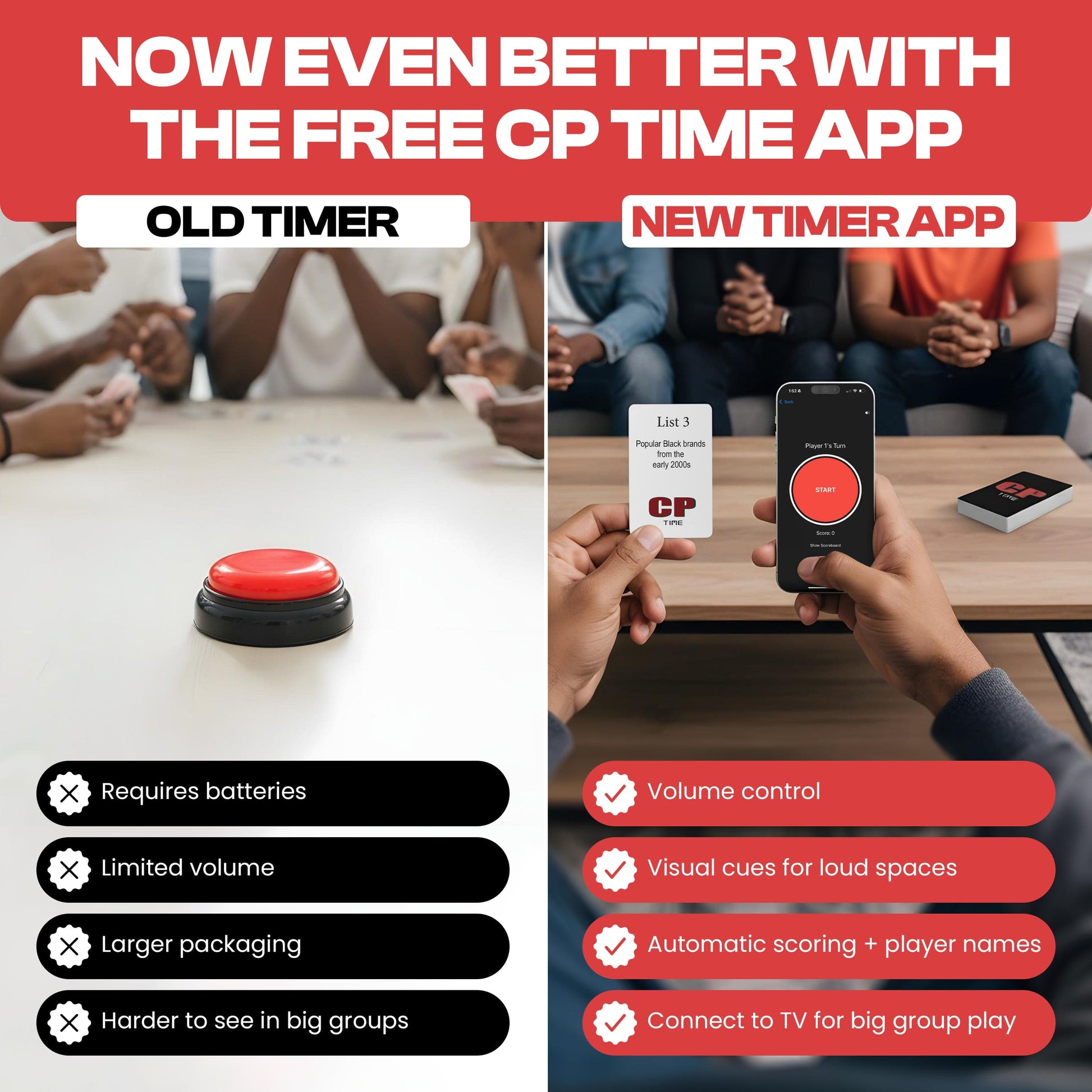 CP Time is a party game filled with questions rooted in Black pop culture, with multiple categories and hours of fun.